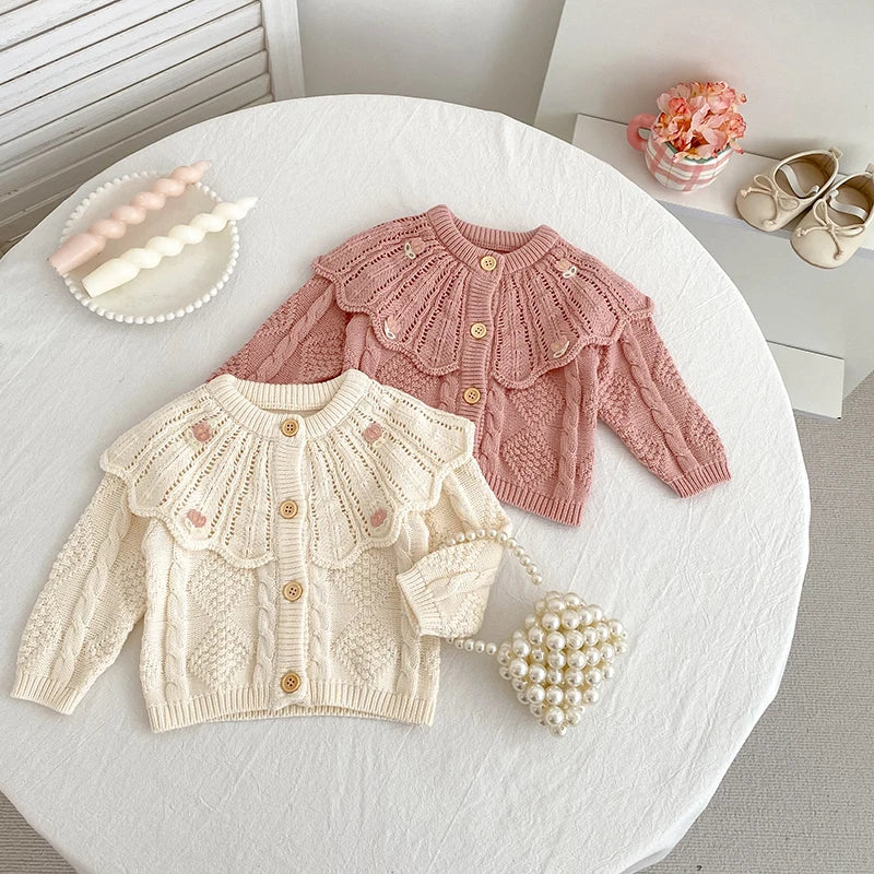 Adorable Knitted Baby Cardigan with Embroidered Collar Cozy & Stylish